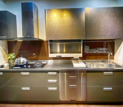 管理員 Blog 2022年6月18日 全館特價優惠 管理員 Blog 2022年6月18日 廚具參考介紹:看膩了石英石,又怕自身使用習慣害的檯面吃色嗎?看過來看過來!不鏽鋼檯面優點:耐熱不怕潮,也相當好清理,且因沒有毛細孔,所以不會有染色問題。搭配時尚灰的門板,十分適