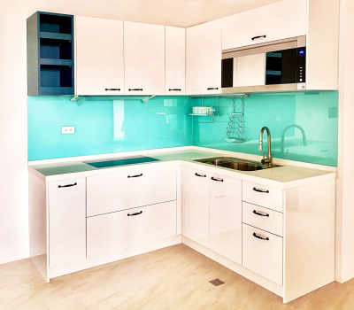 管理員 Blog 2022年9月16日 小而精巧的廚具(實例分享) 管理員 Blog 2022年9月16日 實例分享 小而精巧的廚具 俐落功能齊全 由於屋主是小家庭兩人居住 喜歡簡潔明亮的空間 在配色上,選擇用白色的門板搭配水藍色的烤漆玻璃,跳色的開放櫃更顯得活潑不呆板 歡迎來店